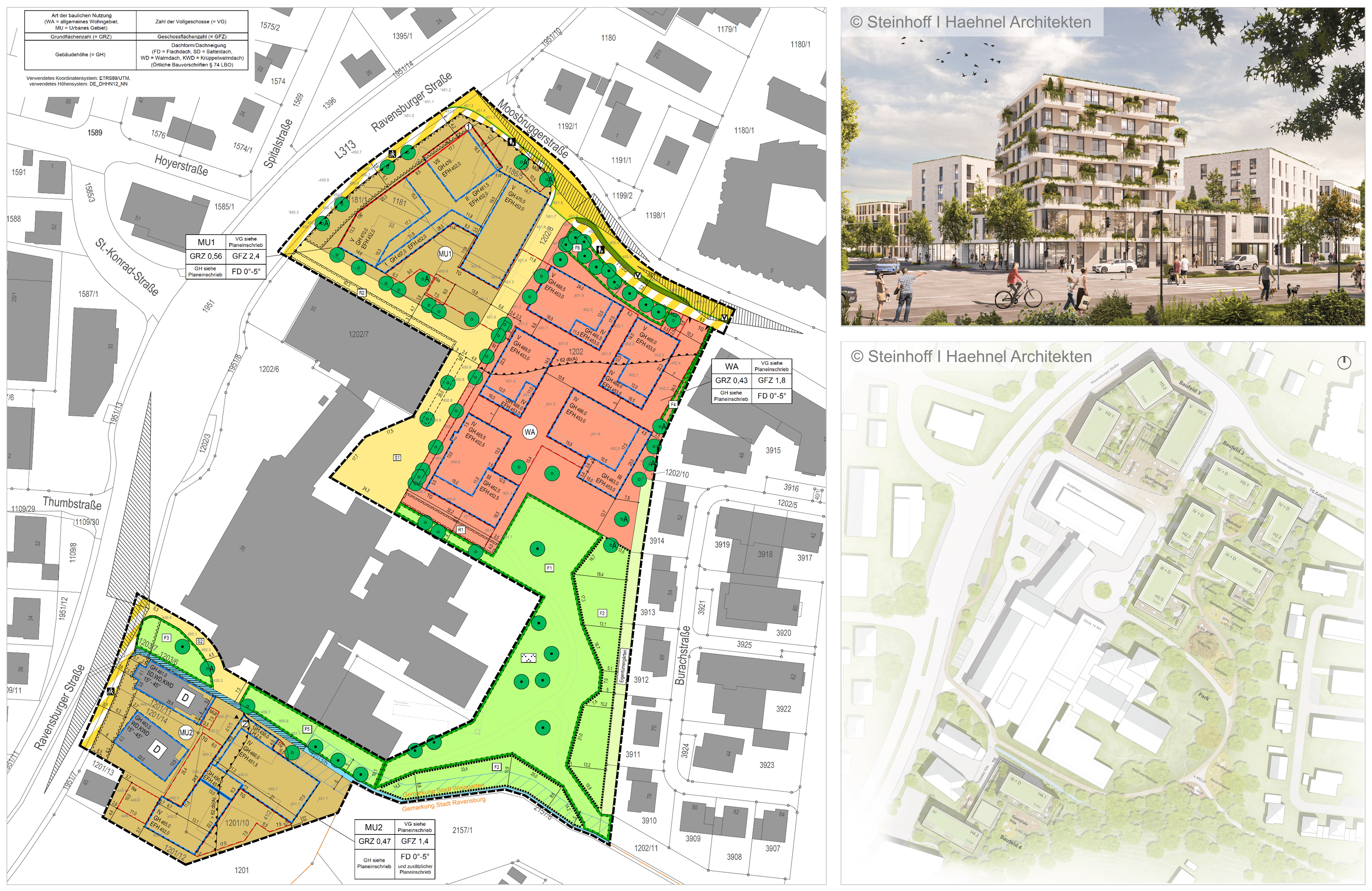Bebauungsplan der Innenentwicklung (3,3 ha) für ein urbanes Stadtquartier mit Parkanschluss auf der Konversionsfläche rund um das ehemalige Krankenhaus 14 Nothelfer. Bürgerbeteiligung, abschnittsweise Entwicklung sowie planungsrechtliche und städtebaulich Beratung. Grundlage ist der aus einem Planungswettbewerb hervorgegangenen Siegerentwurf vom Büro Steinhoff + Haehnel Architekten sowie der Freianlagenplanung vom Büro Sigmund aus Grafenberg, Auftrag Firma ProInvest aus Ulm.